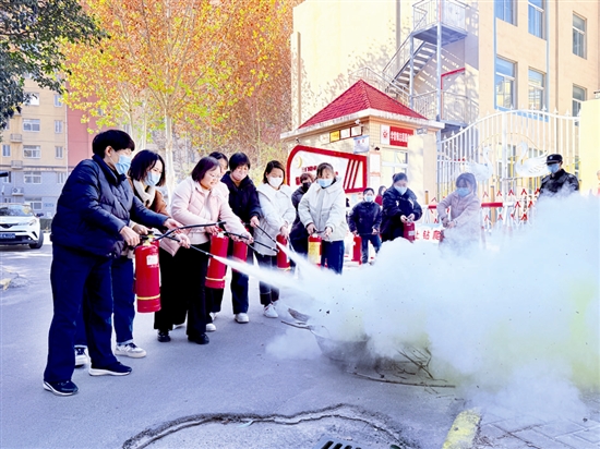 | 近日,湖滨区银昌路幼儿园开展消防安全知识宣讲活动,教师与家长在动手实践中熟练掌握消防器材使用方法,筑牢安全防线。 杨华 摄 |